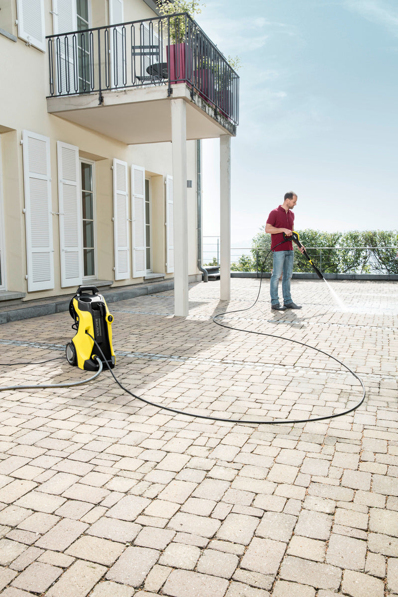 - La manguera de alta presión se engancha y desengancha del equipo y de la pistola de manera rápida y cómoda, lo que ahorra tiempo y trabajo.