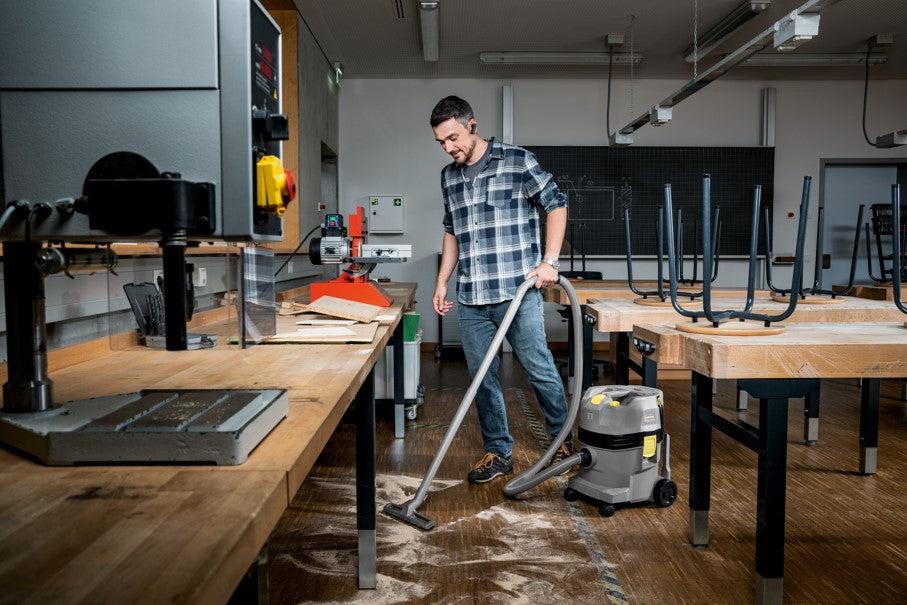 La compacta aspiradora en seco y en húmedo NT 15/1, de gran potencia, está equipada para una limpieza profunda, lo que permite aspirar grandes cantidades de polvo con una potencia de aspiración constantemente alta. Por supuesto, se puede utilizar también como aspiradora en húmedo. La aspiradora está completamente equipada con accesorios, por lo que se puede utilizar de inmediato.