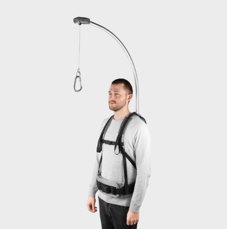 Posibilita un trabajo sin esfuerzo para aumentar la productividad: el bastidor de uso universal se compone de una correa acolchada que se puede llevar cómodamente a la espalda y dispone de un tirante elástico de resorte y un mosquetón para fijar los equipos de trabajo. El sistema de transferencia transporte así el peso de las lanzas telescópicas, los equipos de jardín y las lanzas de alta presión a lo largo del torso del usuario, de modo que la fuerza de retención necesaria en los brazos se reduce prácticamente a cero. El tirante elástico de resorte con cable de acero retráctil y extensible permite que la transmisión de fuerza se adapte de manera flexible a la posición deseada de sujeción.