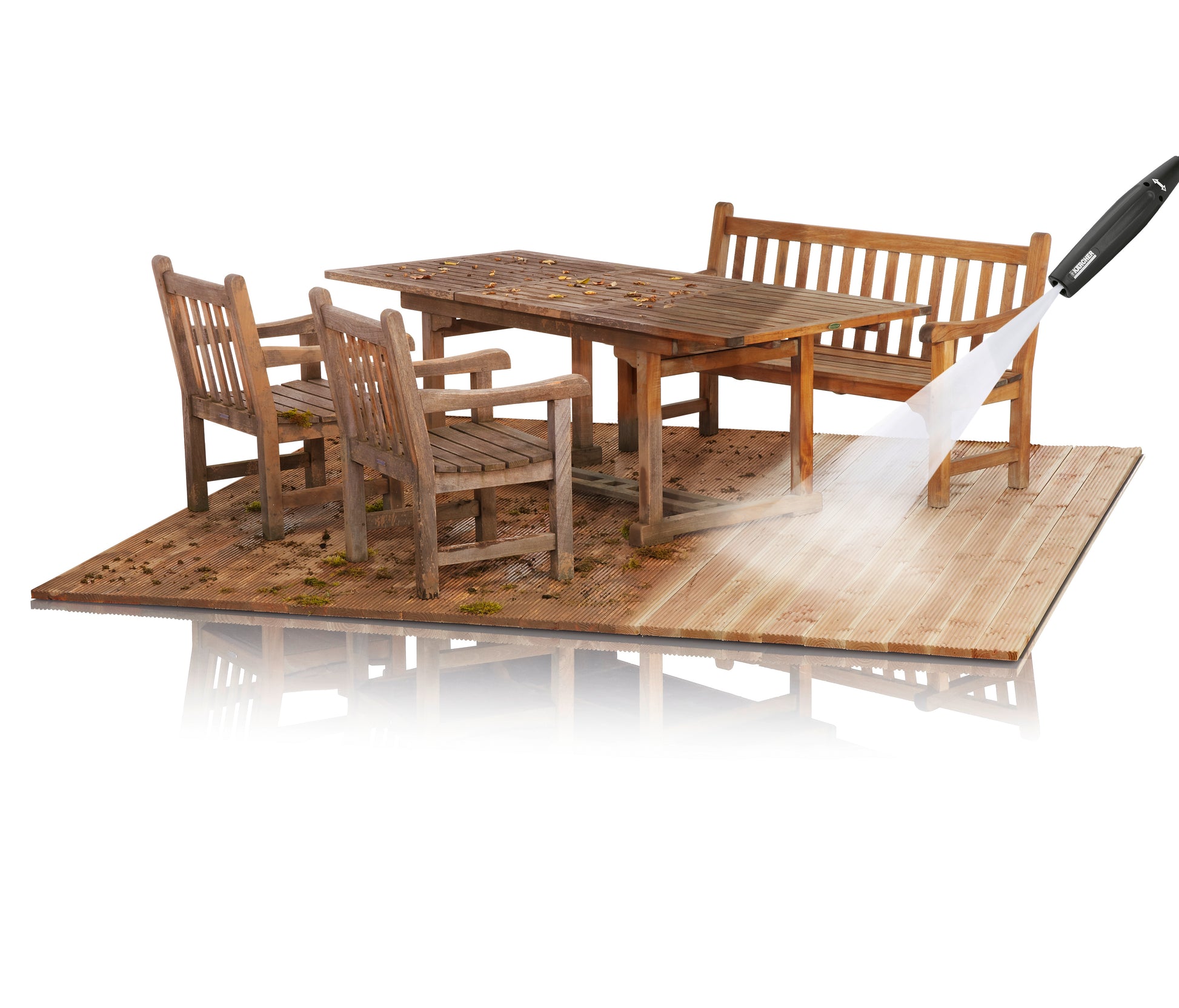 Para la limpieza en profundidad de todas las superficies de madera resistentes al agua tratadas y no tratadas como muebles de jardín, suelos de madera y terrazas.