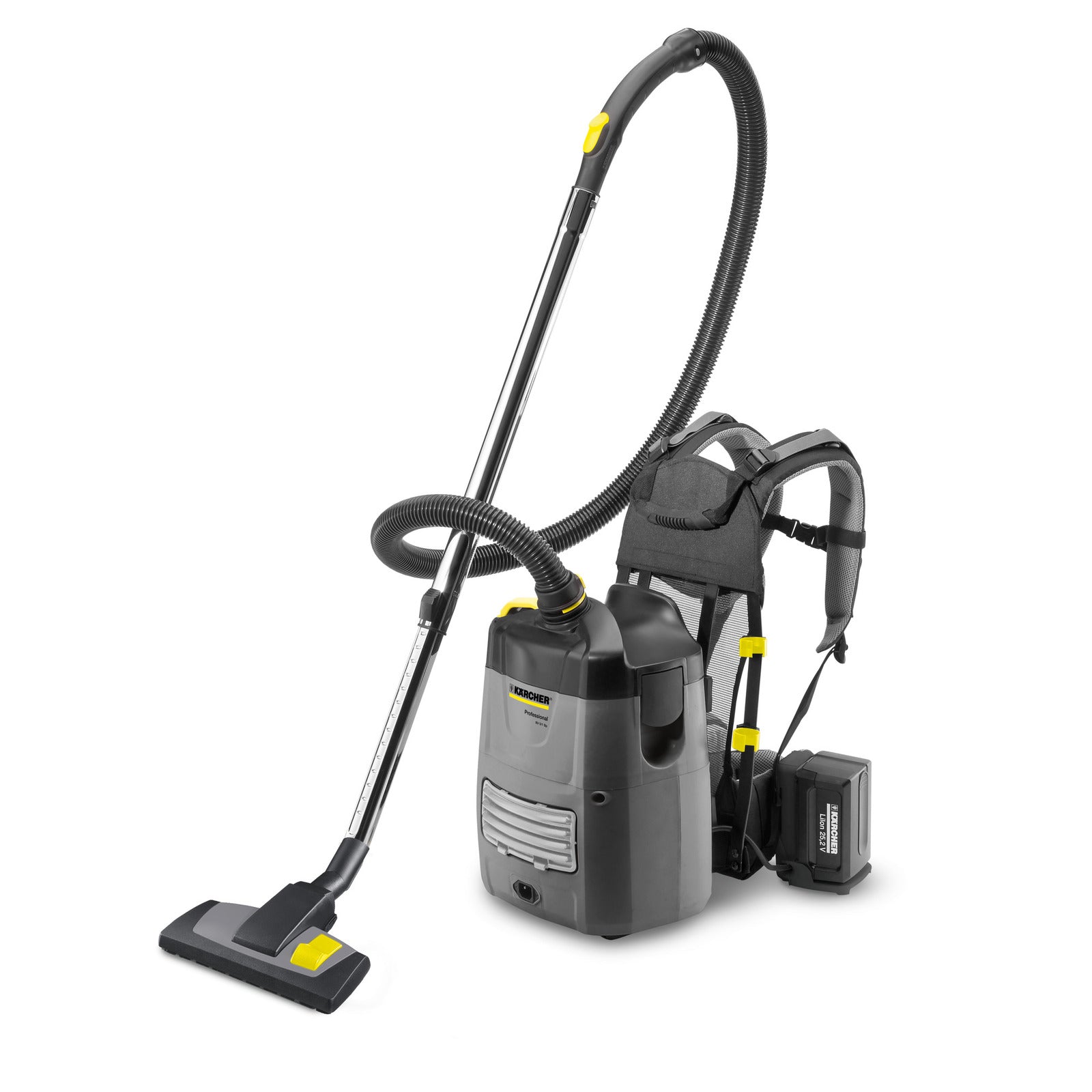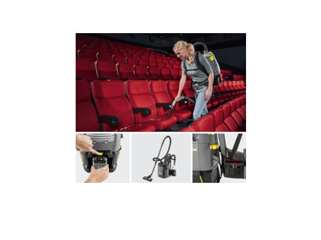 Nuestro nuevo aspirador de mochila BV 5/1 Bp, potente y accionado por baterías, es siempre la primera elección allí donde los espacios estrechos dificultan los trabajos de limpieza, ya sea en cines, aviones, autobuses, trenes o también en escaleras. El bastidor de transporte bien pensado, ergonómico y patentado con sistema de ventilación Air Stream Comfort permite un fácil manejo, reduce la generación de calor en la espalda y, además, evita vibraciones molestas. Se puede adaptar fácilmente a los distintos usuarios y proporciona una gran comodidad de transporte. El manejo del equipo también es cómodo, porque todas las funciones importantes de servicio y adicionales, como el modo eco! Eficiencia o el indicador de estado de carga, se controlan y monitorean directamente mediante un panel de control en el cinturón.