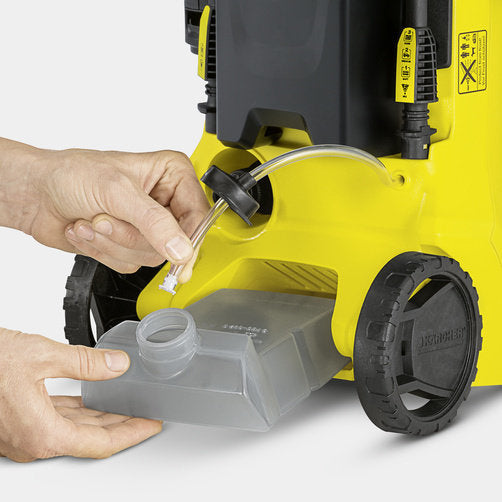 El práctico depósito para detergente, simplifica la aplicación de detergentes Los detergentes de Kärcher incrementan la eficacia y prolongan con protección y conservación la satisfacción con el resultado.