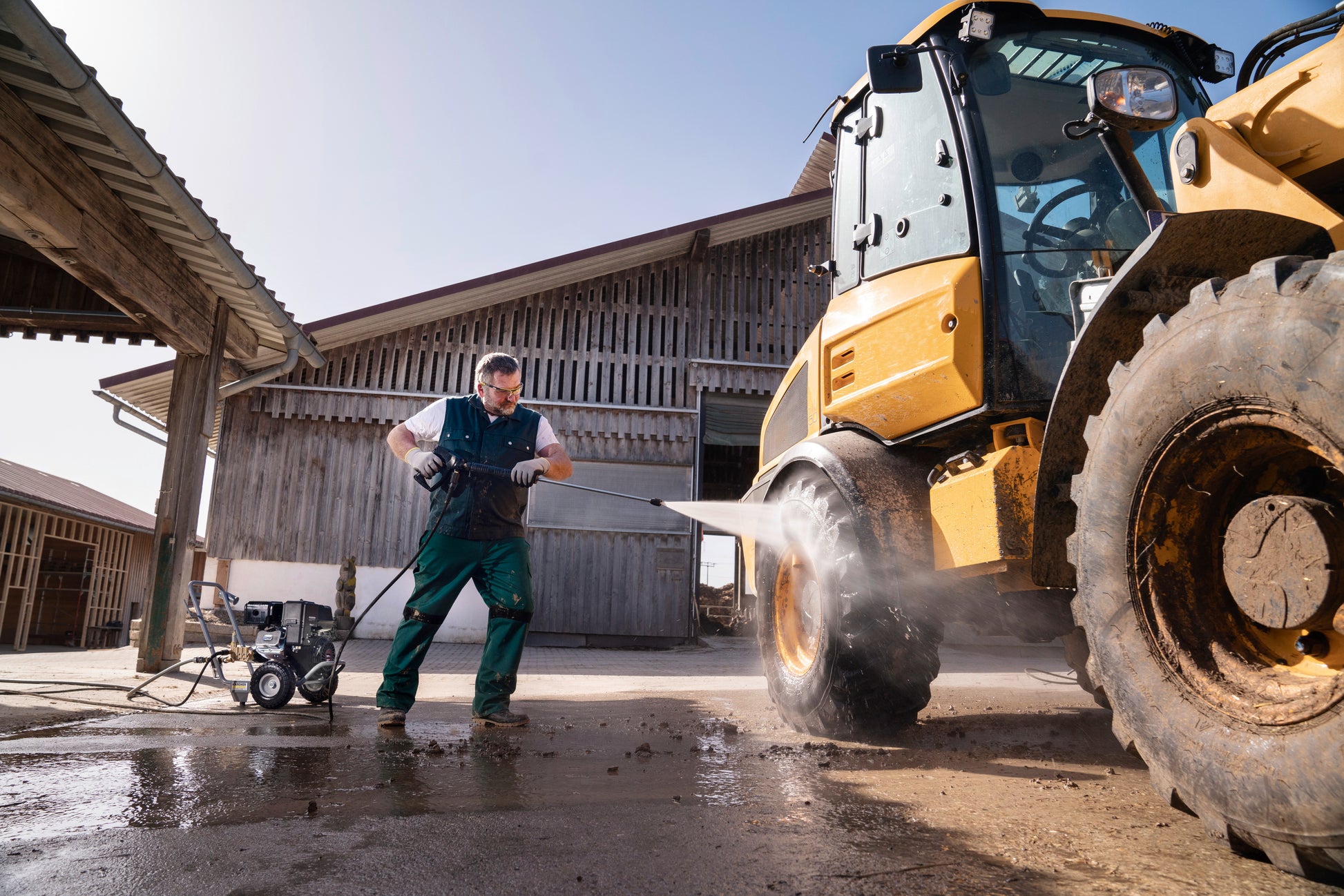 La compacta HD 6/15 G Classic es el equipo básico ideal para introducirse en el mundo de las limpiadoras de alta presión de agua fría móviles y a gasolina de Kärcher. Extremadamente fácil de transportar en un automóvil, gracias a sus 150 bar de presión de trabajo, su robusta bomba de cigüeñal y su caudal de agua de hasta 600 litros por hora consigue dominar incluso las tareas de limpieza más exigentes, como pueden ser en las obras o en el ámbito de los servicios municipales. El motor de gasolina integrado (EU STAGE V) proporciona independencia de las fuentes de corriente externas, las ruedas con cámara de aire garantizan la movilidad necesaria en el lugar de uso, y el asa de empuje ergonómica y el práctico almacenamiento de accesorios permiten un manejo sencillo para el usuario. Además, es posible acceder fácilmente a los componentes protegidos mediante termoválvula y válvula de seguridad. Asimismo, el estable bastidor tubular de acero de la HD 6/15 G Classic evita eficazmente los daños debidos a efectos mecánicos del exterior.
