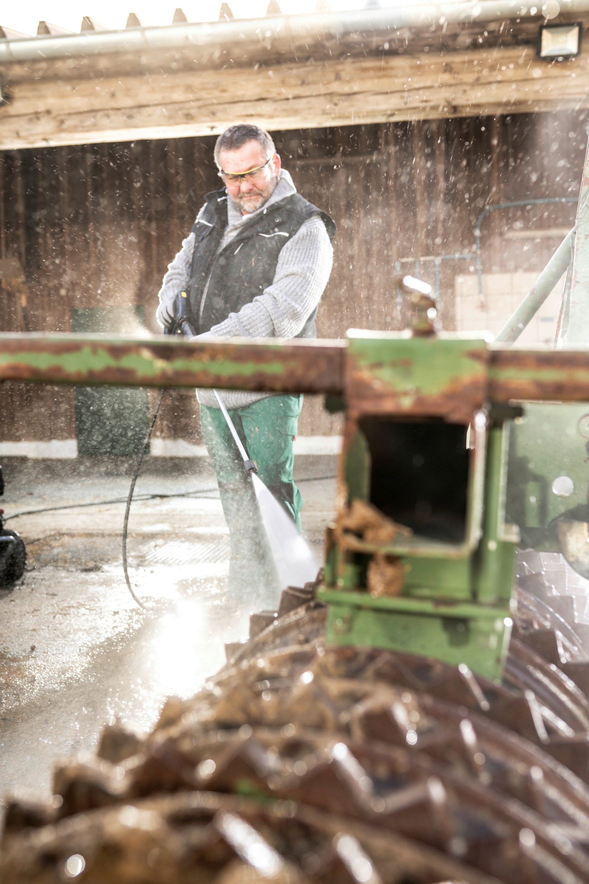 Un resistente bastidor de tubos de acero protege el equipo contra daños de forma segura. Termoválvula para proteger la bomba del sobrecalentamiento en el circuito. Bomba de cigüeñal con émbolos cerámicos.Posibilidad de almacenaje para accesorios