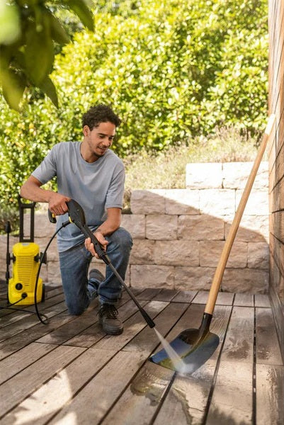 Dile adiós a la suciedad. Mantén limpia tu casa, también alrededor de los muebles de exterior y jardineras más pequeñas, con la hidrolavadora K 2 Premium Car. Incluye el kit para el coche. La suciedad de los vehículos, escaleras, herramientas y muebles de jardín ya son cosa del pasado. La hidrolavadora K 2 Premium Car con lanza pulverizadora simple y boquilla turbo con chorro concentrado es ideal para todas las tareas de limpieza ocasionales del hogar y del jardín. La suciedad resistente también se elimina gracias al chorro plano de la lanza pulverizadora simple incluida y al chorro giratorio de la boquilla turbo también incluida. El kit para el coche incluye un cepillo de lavado para disolver la película de suciedad, una boquilla de espuma para espuma altamente adhesiva y la máxima capacidad de limpieza, así como 500 ml de detergente para coches. Con sus ruedas de marcha suave, la K 2 Premium Car se transporta cómodamente al lugar de uso. El sistema Quick Connect ofrece una comodidad aún mayor: el conector de acción rápida permite encajar y desencajar fácilmente la manguera de alta presión de 4 metros de longitud en el equipo y la pistola. Los accesorios suministrados se almacenan sin dificultad en la K 2 Premium Car.