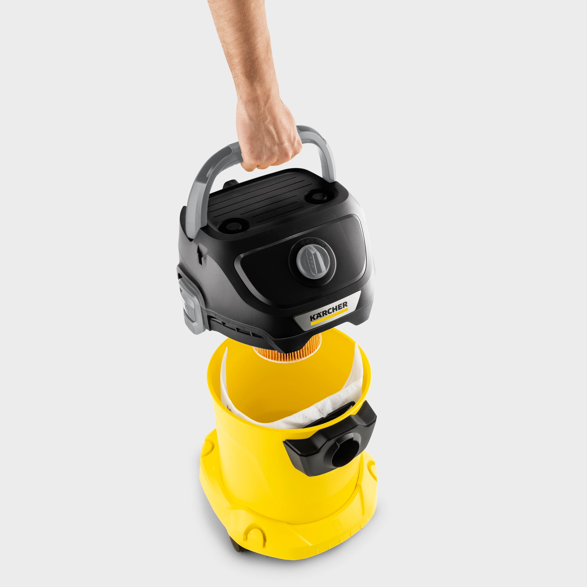 El KWD 3 V-17/6/20 es potente y energéticamente eficiente, con un consumo energético de tan solo 1000 W. Tanto el equipo como la manguera de aspiración y la boquilla para suelos con clips combinan a la perfección para obtener los mejores resultados en la limpieza con suciedad seca, húmeda, fina o gruesa. El aspirador en seco y húmedo destaca por su compacto diseño y un resistente depósito de plástico de 17 litros, cable de 6 m, manguera de aspiración de 2 m y por su bolsa de filtro de fieltro. Gracias al filtro de cartucho de una pieza, es posible el aspirado tanto de la suciedad húmeda como seca sin tener que cambiar el filtro. La función de soplado es útil para la limpieza en zonas de difícil acceso. El almacenamiento de la manguera tiene lugar en poco espacio, colgándose del cabezal del equipo. El cable puede recogerse en el gancho para cables, los tubos y la boquilla para suelos, en el protector. El sistema de cierre «Pull & Push» permite abrir y cerrar fácilmente el depósito. El asa se puede extraer y el accesorio se puede insertar directamente en la manguera de aspiración. Otra característica inteligente: en la superficie del cabezal del equipo podrán almacenarse herramientas o piezas pequeñas. El asa de diseño ergonómico facilita un cómodo transporte.
