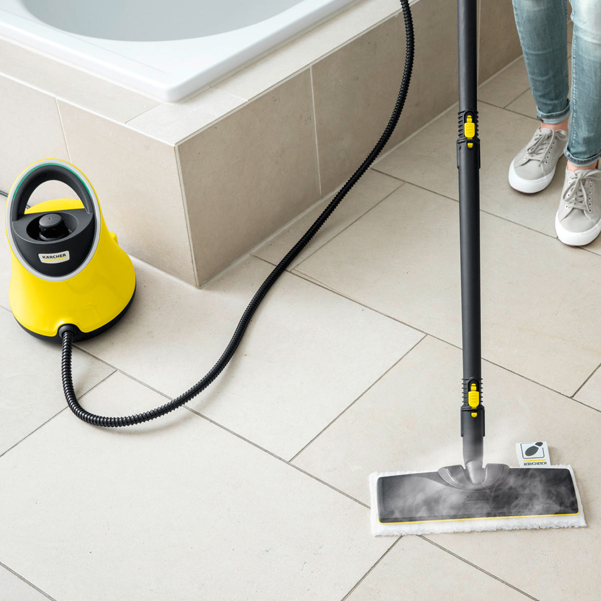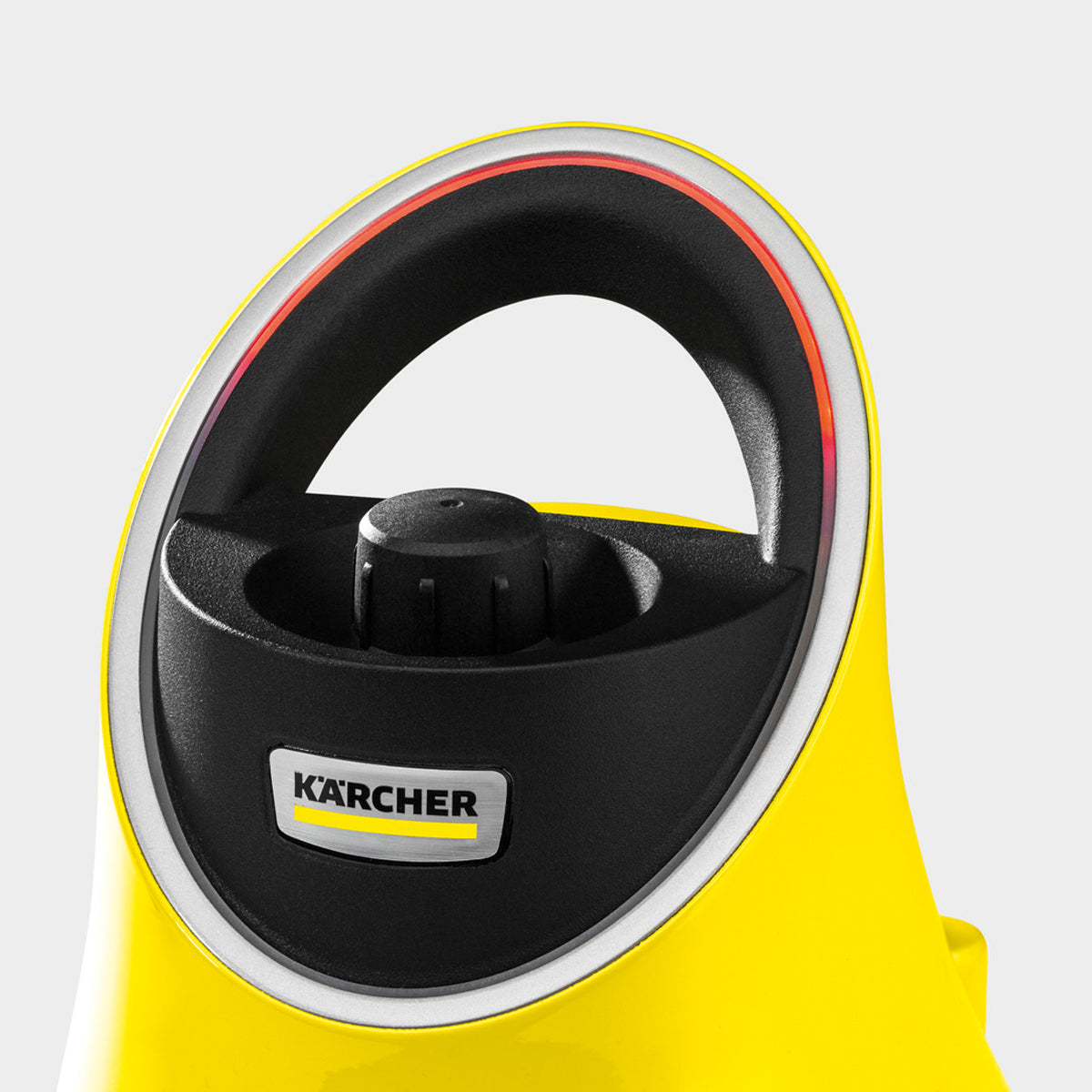 El nuevo limpiador de vapor Kärcher SC 2 Deluxe EasyFix, además de diferenciarse por su diseño, ayuda a que este nuevo limpiador de vapor sea más compacto y estilizado. Una de las características más destacadas es la función LED en el mango para indicar el modo de operación. El modo “Listo para usar” se indica mediante una luz LED verde en el mango.