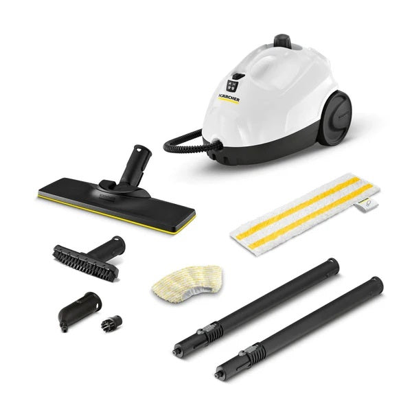La limpiadora de vapor básica simple y fácil de utilizar SC 2 EasyFix permite regular el vapor en dos etapas para adaptar su intensidad en función de la superficie y la suciedad. Un práctico almacenaje de accesorios en el equipo y la posición de estacionamiento para la boquilla para suelos son detalles prácticos que consiguen que la limpieza con vapor resulte aún más cómoda. La boquilla para suelos EasyFix con articulación flexible garantiza la máxima ergonomía y proporciona unos resultados de limpieza perfectos gracias a la tecnología de láminas. El cómodo sistema de velcro permite fijar de manera sencilla y rápida el paño para suelos de microfibra a la boquilla para suelos y quitarlo sin entrar en contacto con la suciedad. La limpiadora de vapor SC 2 EasyFix de Kärcher limpia sin ningún producto químico y es de uso universal.Con una limpieza a fondo se eliminan el 99,99 % de las bacterias comunes en superficies duras habituales. El sistema de seguro ofrece una protección contra un uso indebido de la pistola de vapor por parte de los niños.