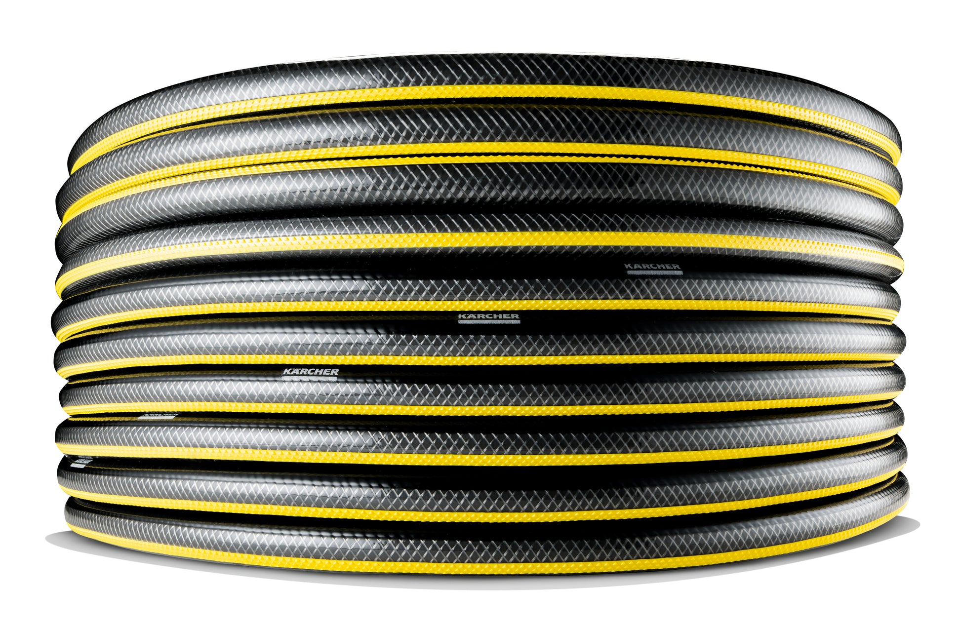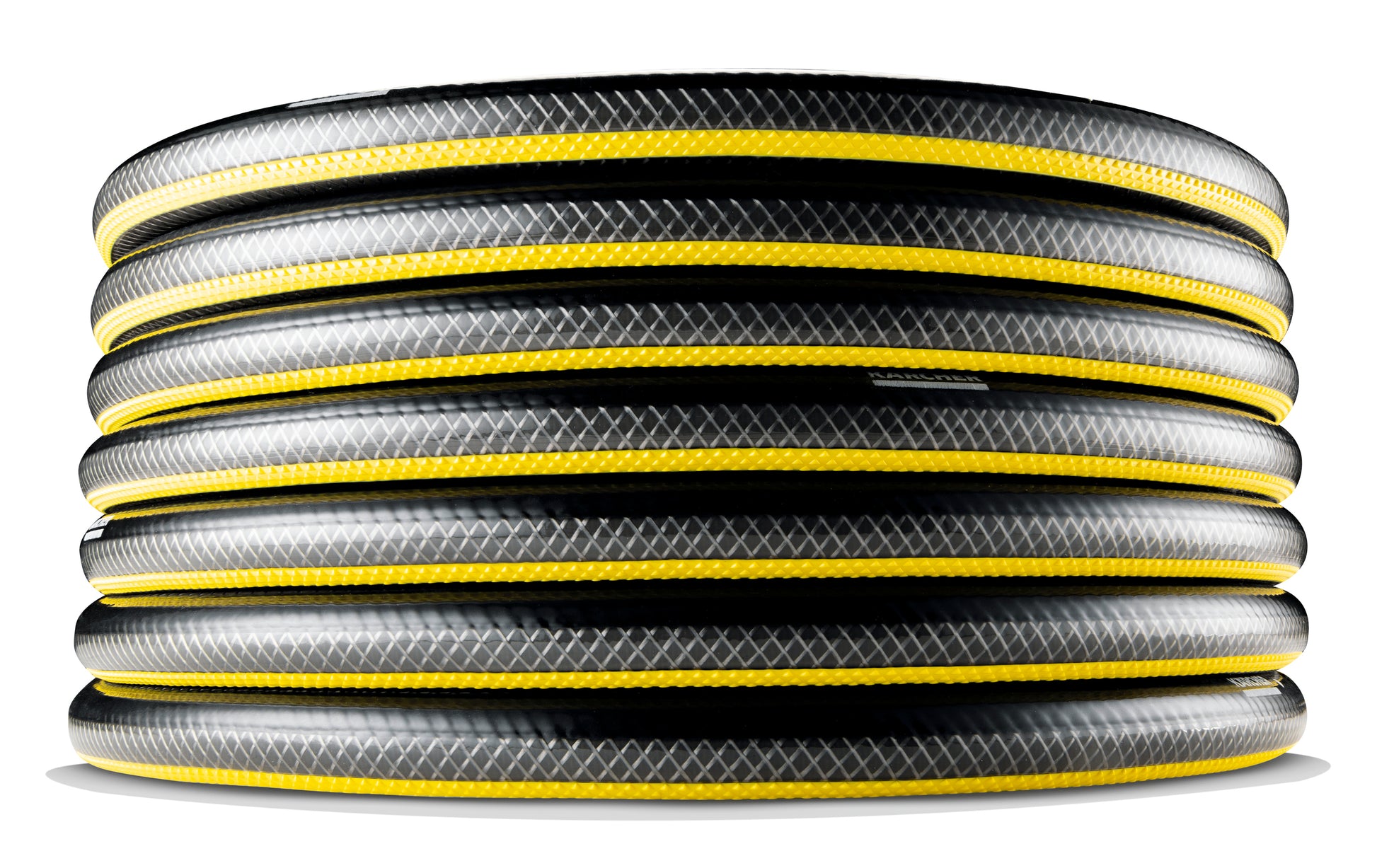 • Manguera de gran calidad para jardín, libre de ftalato, inocua para la salud, extremadamente flexible y resistente a la torsión y dobleces, tejido en cruzado utilizando la innovadora fibra amarilla Kevlar® de DuPont™, 3 capas la capa intermedia opaca impide la formación de algas en la manguera, presión de estallido: 45 bares, resistente a la variación de temperatura en el rango de - 20 a + 65 °C, libre de cadmio, bario y plomo.